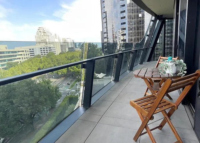 Das Apartment ist in ca. 2 km Entfernung von der Eureka Skydeck 88 Aussichtsplattform und der Royal Botanic Gardens Melbourne liegt in circa 1 km Entfernung. Der St. Kilda Botanische Garten ist in ungefähr 10 Fahrminuten Entfernung vom Apartment gelegen.